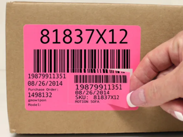 A master label on a package contains all shipping information. A smaller, removable top label can be peeled off by the courier and applied to a manifest or delivery record.